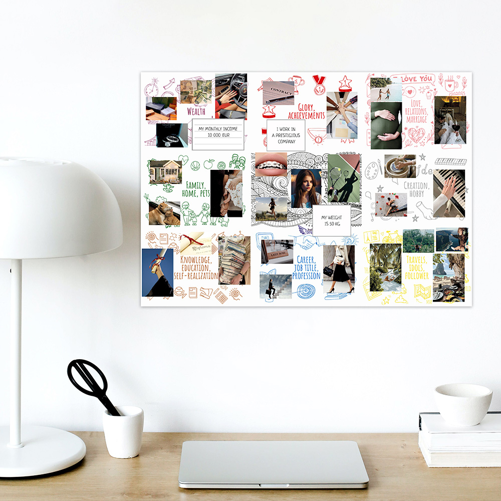 Creating a wish map is not just creativity, it is a powerful tool for focusing on your goals. Every time you look at it, you will remind yourself of what you are striving for, and this will motivate you to move forward.