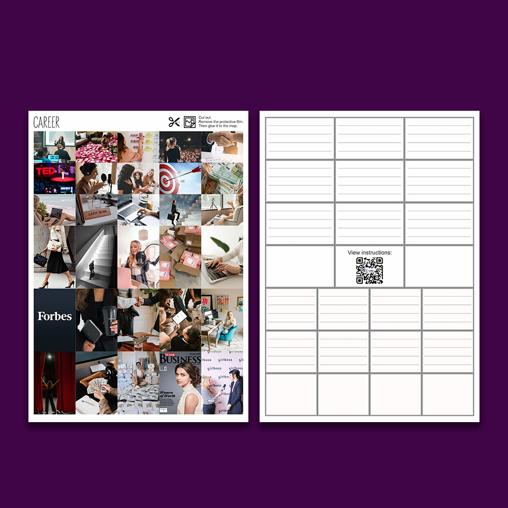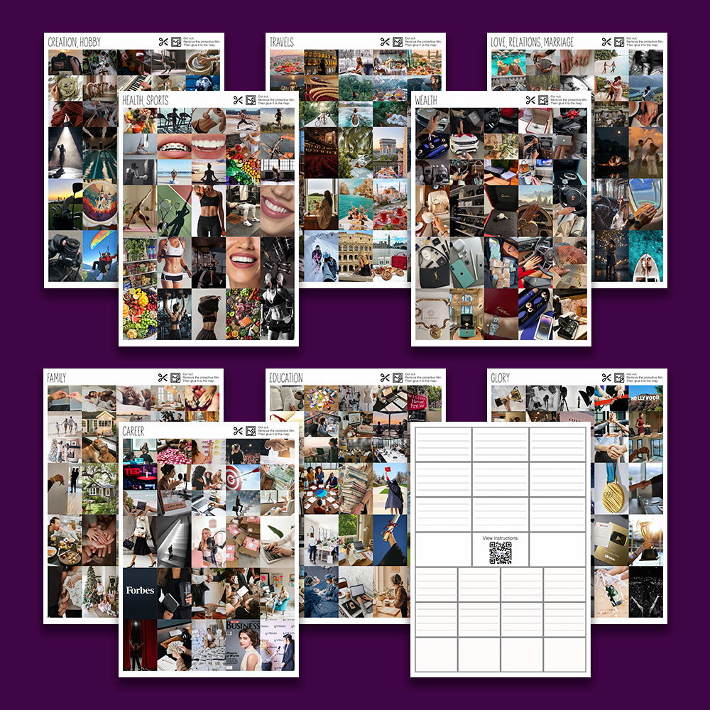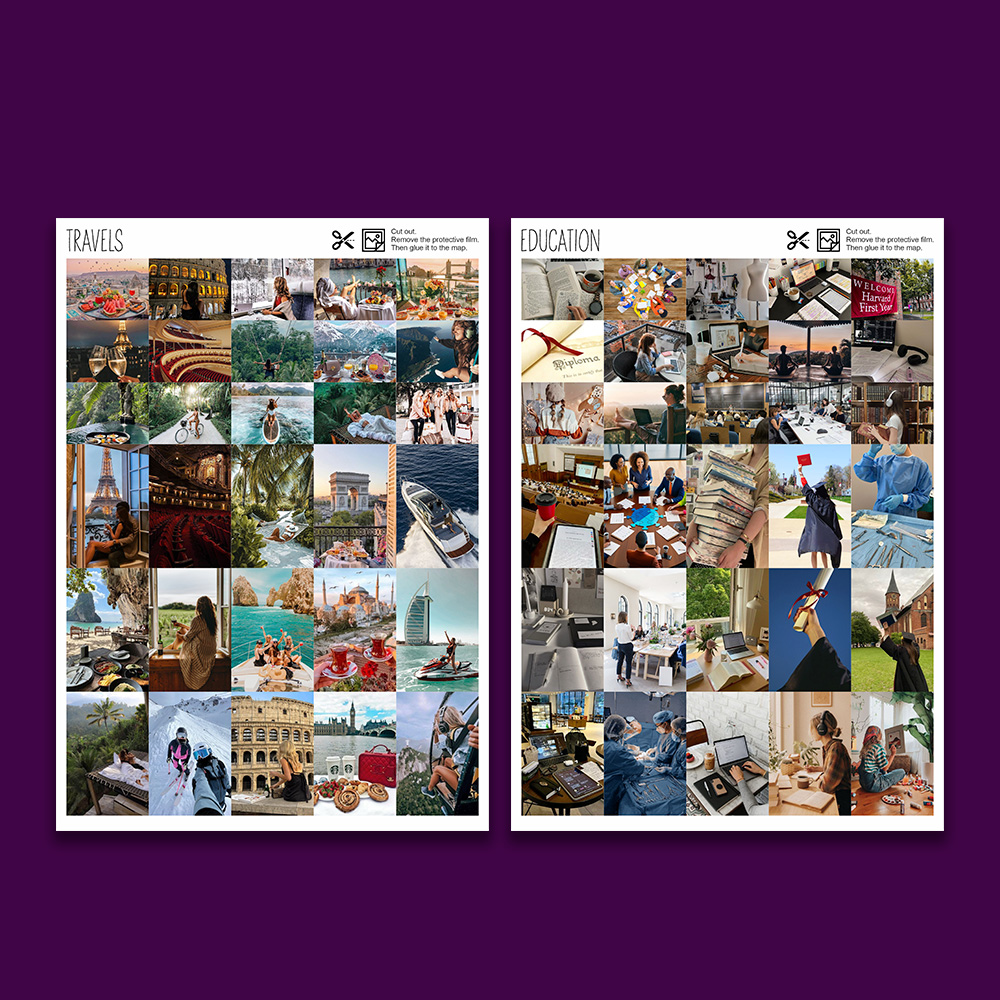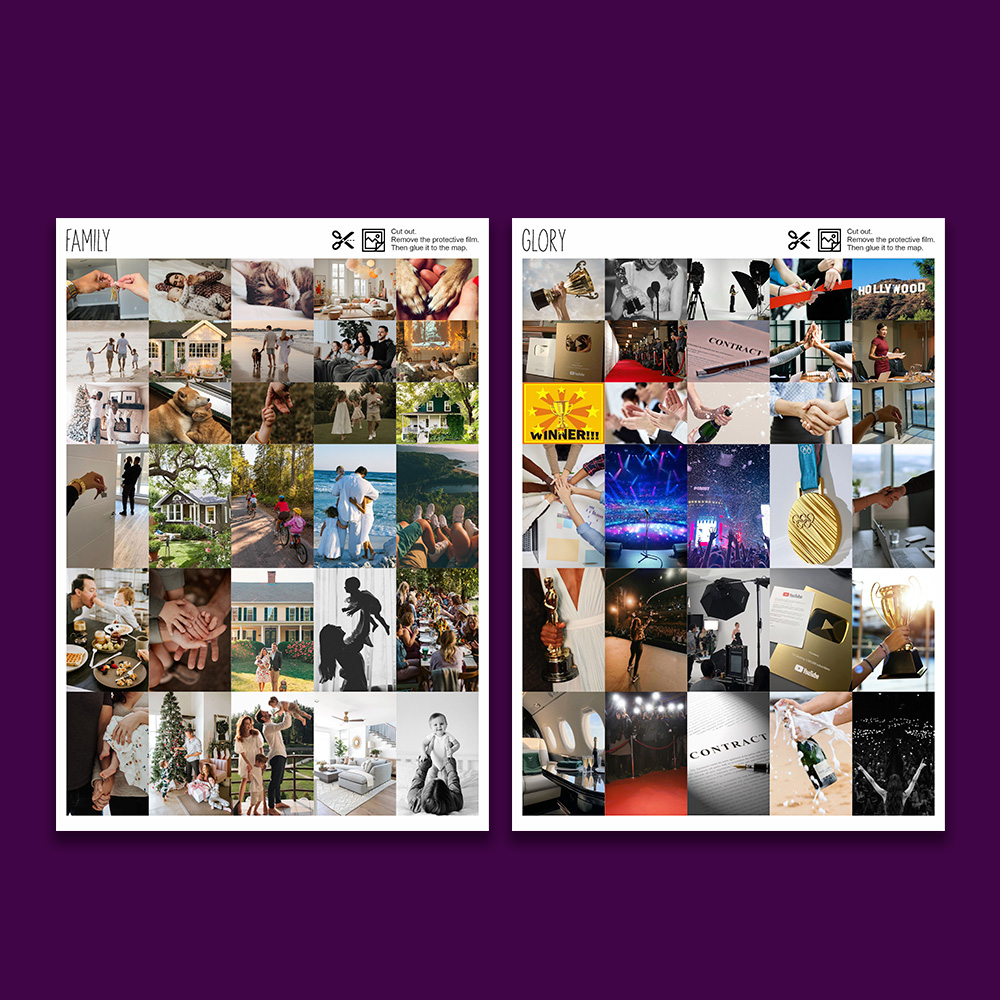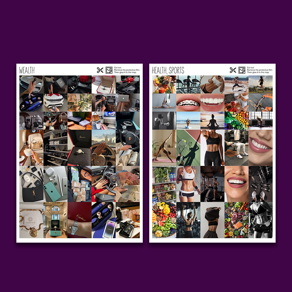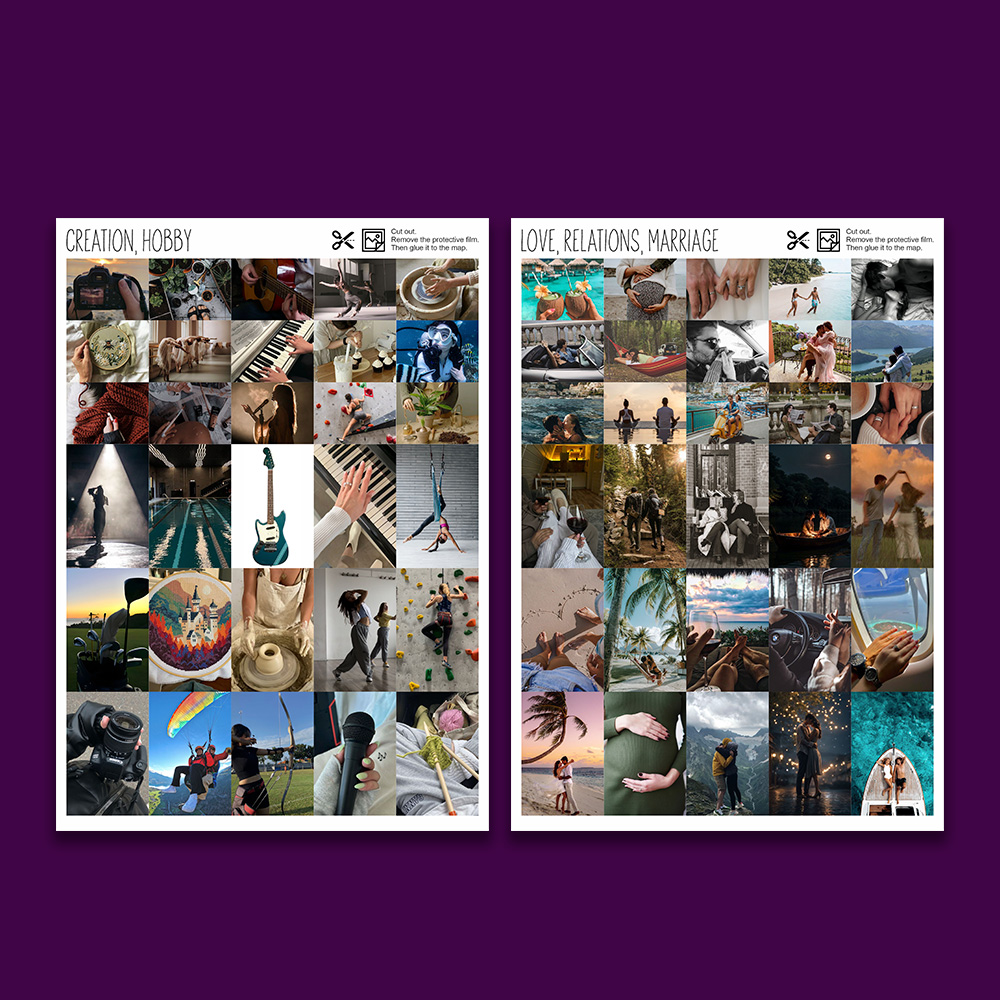 Individuality: you choose which images and affirmations to place on the map, making it fully reflect your desires.